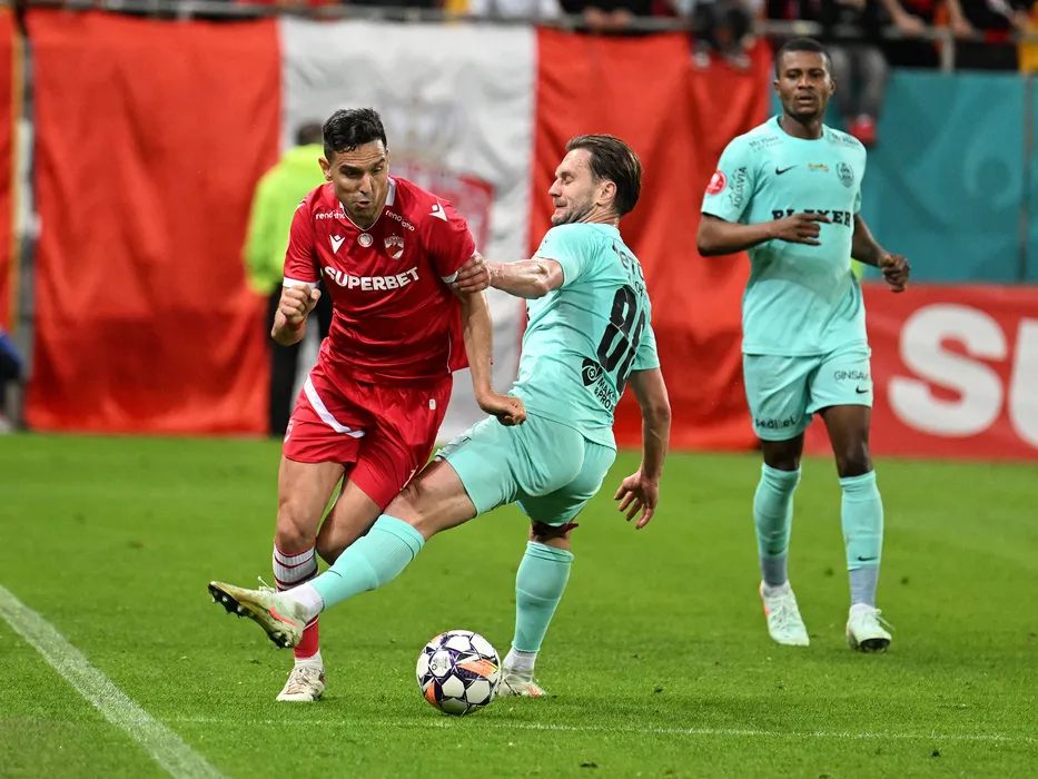 Georgi Milanov Ventsislavov si Damjan Djokovic in meciul de fotbal dintre Dinamo Bucuresti si CFR Cluj, contand pentru Play off-ul Superligii Superbet, desfasurat pe Arena Nationala din Bucuresti, luni 28 aprilie 2025. © FOTO:Razvan Pasarica/SPORT PICTURES