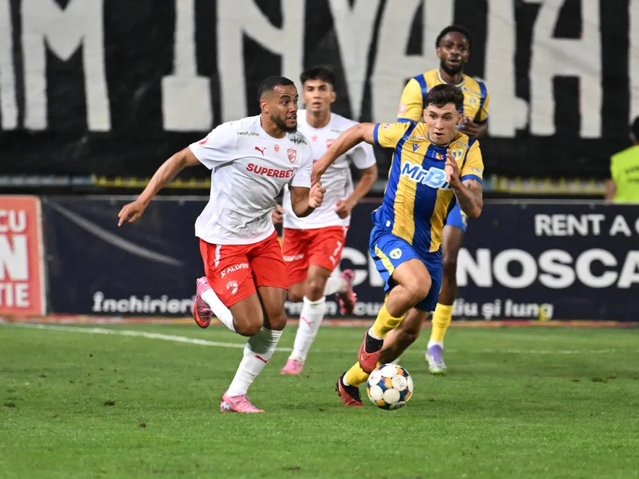 Maxime James Sivis si Robert Ionut Salceanu in meciul dintre Petrolul Ploiesti si Dinamo Bucuresti, contand pentru Superliga Superbet, desfasurat pe Stadionul Ilie Oana din Ploiesti, luni 15 septembrie 2025. © FOTO:Razvan Pasarica/SPORT PICTURES