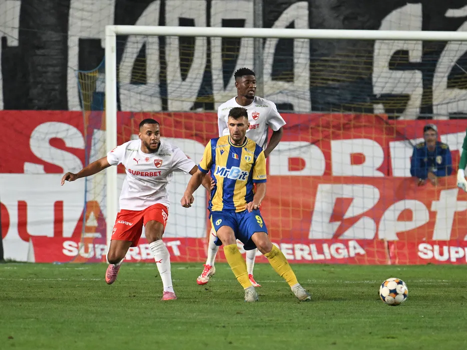 Maxime James Sivis, Adi Marian Chica Rosa si Kennedy Kofi Boateng in meciul dintre Petrolul Ploiesti si Dinamo Bucuresti, contand pentru Superliga Superbet, desfasurat pe Stadionul Ilie Oana din Ploiesti, luni 15 septembrie 2025. © FOTO:Razvan Pasarica/SPORT PICTURES