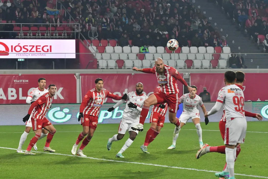 Branislav Ninaj și Akos Kecskes în meciul de fotbal dintre FC Sepsi OSK Sfantu Gheorghe și SC Dinamo 1948 Bucuresti, contând pentru SuperLiga Superbet, desfășurat pe Stadionul SEPSI Arena OSK din Sfântu Gheorghe, luni 4 decembrie 2023. © FOTO: Bogdan BALAS/SPORT PICTURES