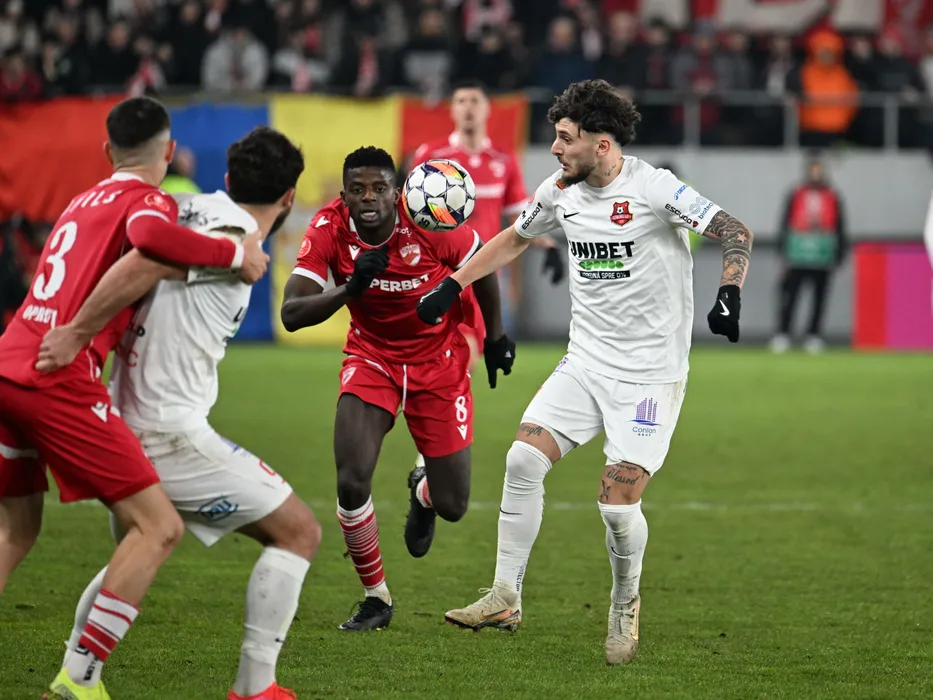 Vhakka Eddy Stelh Gnahore si Ianis Ilie Stoica in meciul de fotbal dintre Dinamo Bucuresti si AFC Hermannstadt Sibiu, contand pentru SuperLiga Superbet, desfasurat pe Stadionul Arcul de Triumf din Bucuresti, luni 3 martie 2025. © FOTO: Razvan Pasarica/SPORT PICTURES