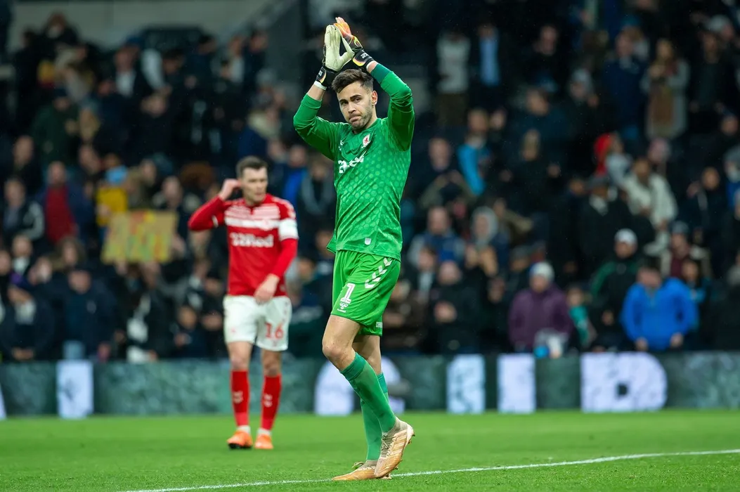 Goalkeeper Tomas Mejias of Middlesbrough claps the fans at Full Time