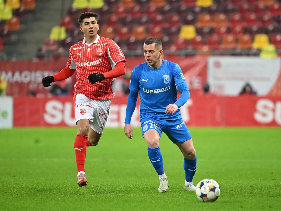 Alexandru Marian Musi si Alexandru Cicaldau in meciul de fotbal dintre Dinamo Bucuresti si Universitatea Craiova, din cadrul Superligii Superbet, desfasurat pe Arena Nationala din Bucuresti, luni 9 februarie 2026. © FOTO:Razvan Pasarica/SPORT PICTURES
