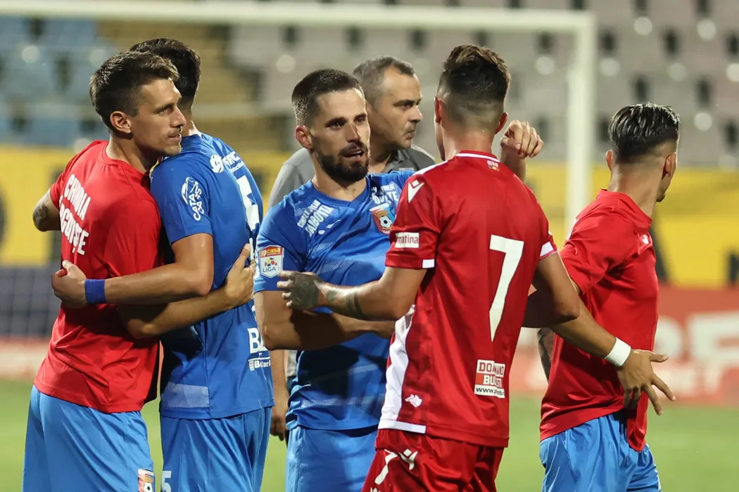 Meciul de fotbal dintre echipele Chindia Targoviste si Dinamo din etapa a IV-a a Ligii 1, disputat pe stadionul Municipal din Buzau, duminica, 8 august 2021. GEORGE FILIP / MEDIAFAX FOTO