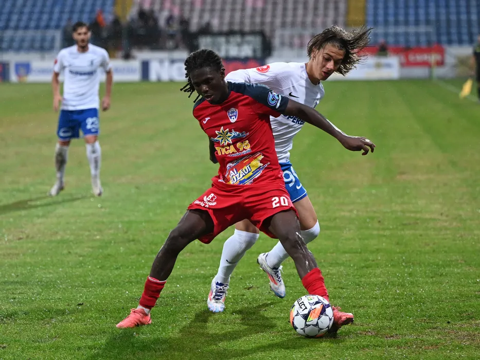 David Jose Gomes Oliveira Tavares si Alexandru Constantin Stoian in meciul de fotbal dintre Gloria Buzau si Farul Constanta, contand pentru Superliga Superbet, desfasurat pe Stadionul Municipal din Buzau, duminica 29 septembrie 2024. © FOTO:Razvan Pasarica/SPORT PICTURES