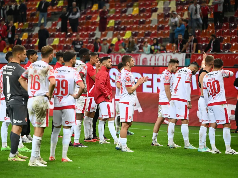 Fotbalistii dinamovisti Quentin Alexandre Julien Bena,Goncalo De Almeida Gregorio,Cristian Ionut Costinsi Dennis Dorin Politic saluta galeria dupa meciul de fotbal dintre Dinamo Bucuresti si Politehnica Iasi, din cadrul Superligii Superbet, desfasurat pe Arena Nationala din Bucuresti, vineri 27 octombrie 2023. © FOTO:Razvan Pasarica/SPORT PICTURES