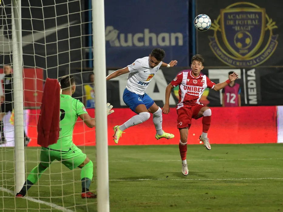 George Danut Ganea si Costin Ionut Amzar in meciul de fotbal dintre Farul Constanta si Dinamo Bucuresti, contand pentru Liga 1 Casa Pariurilor, desfasurat pe Stadionul central al Academiei Gheorghe Hagi din Ovidiu, vineri 20 august 2021. © FOTO:Razvan Pasarica/SPORT PICTURES