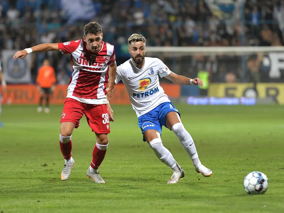 Ahmed Andrei Mustafa Bani si Virgil Andrei Ciobanu in meciul de fotbal dintre Farul Constanta si Dinamo Bucuresti, contand pentru Liga 1 Casa Pariurilor, desfasurat pe Stadionul central al Academiei Gheorghe Hagi din Ovidiu, vineri 20 august 2021. © FOTO:Razvan Pasarica/SPORT PICTURES