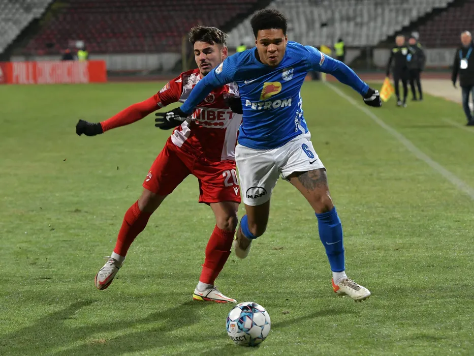 Antonio Alexandru Bordusanu si Bradley De Nooijer in meciul de fotbal dintre Dinamo Bucuresti si Farul Constanta, contand pentru Liga 1 Casa Pariurilor, desfasurat pe Stadionul Dinamo din Bucuresti, luni 20 decembrie 2021. © FOTO:Razvan Pasarica/SPORT PICTURES