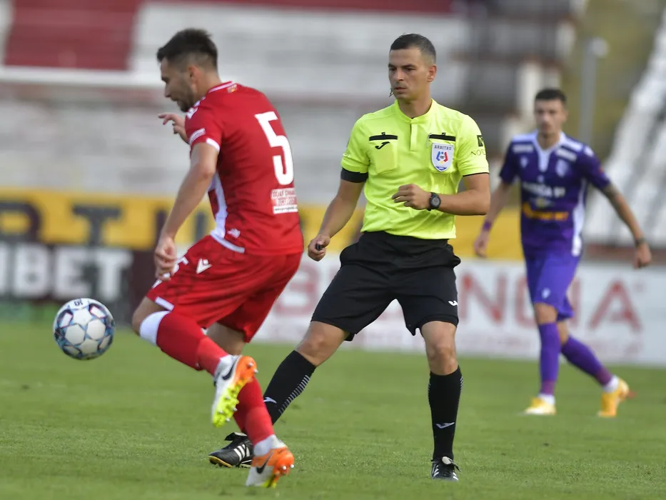 Arbitrul central Florin Andrei in meciul de fotbal dintre Dinamo Bucuresti si FC Arges, contand pentru Liga 1 Casa Pariurilor, desfasurat pe Stadionul Dinamo din Bucuresti, sambata 28 august 2021. © FOTO:Razvan Pasarica/SPORT PICTURES