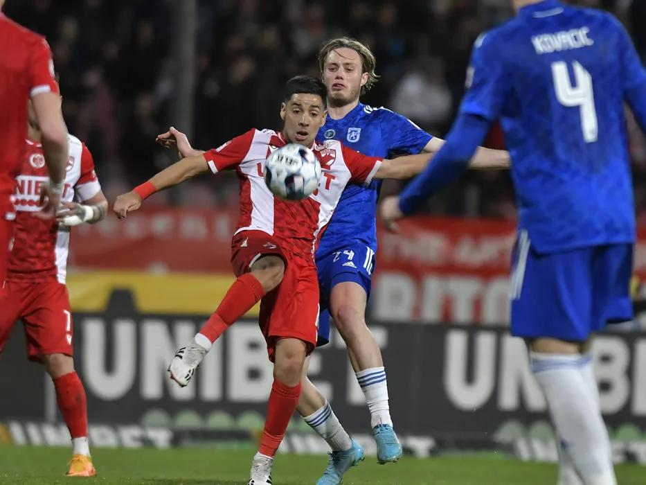 Jonathan Emanuel Rodrigues si William Guido R Baeten in meciul de fotbal dintre Dinamo Bucuresti si FC U Craiova, contand pentru Play-out-ul Ligii 1 Casa Pariurilor, desfasurat pe Stadionul Dinamo din Bucuresti, vineri 8 aprilie 2022. © FOTO:Razvan Pasarica/SPORT PICTURES