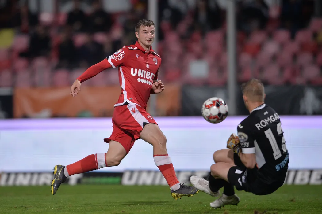 Formatiile Dinamo Bucuresti (echipament rosu) si Gaz Metan Medias s-au intalnit intr-o partida din etapa a 13-a din Liga I la fotbal, partida disputata pe stadionul Dinamo din Capitala, vineri 18 octombrie 2019. ALEXANDRU DOBRE / MEDIAFAX FOTO
