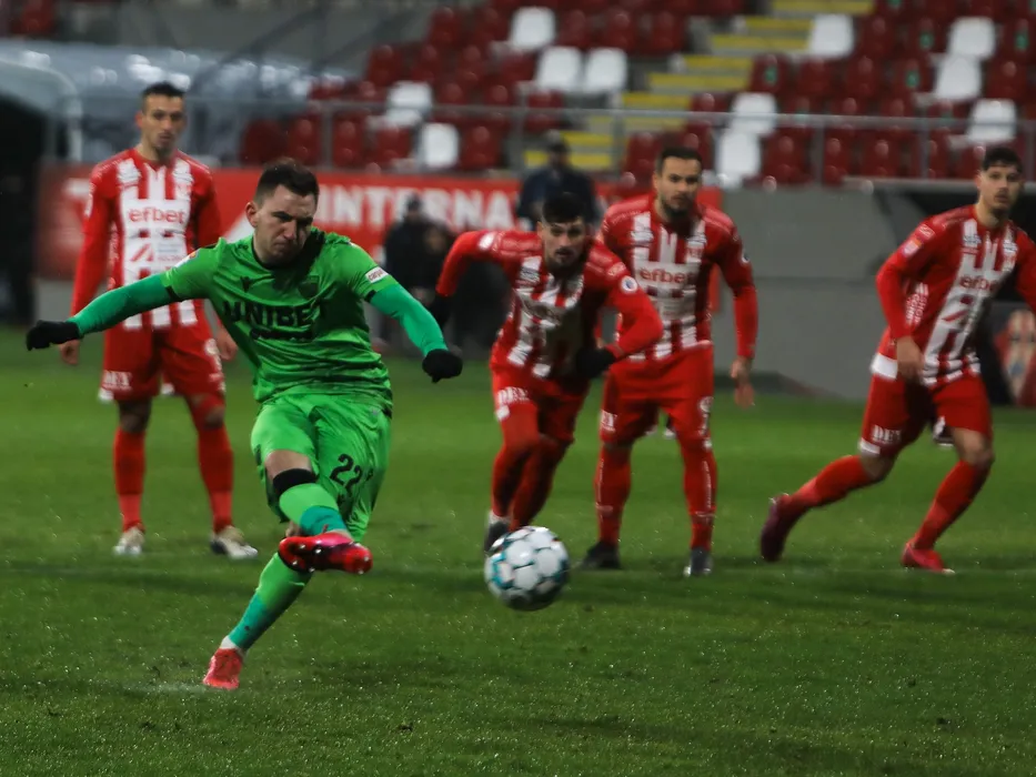 Deian Cristian Sorescu inscrie un gol din penalty in meciul de fotbal dintre UTA Arad si Dinamo Bucuresti, contand pentru Liga 1 Casa Pariurilor, desfasurat fara spectatori pe Stadionul Francisc Neuman din Arad, duminica 31 ianuarie 2021. © FOTO:Ciprian Petcut/SPORT PICTURES