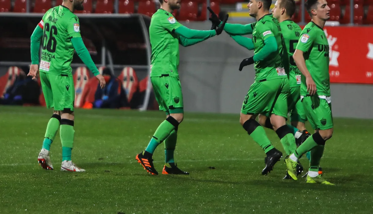 Bucurie a fotbalistilor dinamovisti dupa un gol marcatcu Ante Puljic, Marco Ehmann, Paul Viorel Anton si Steliano Filip in meciul de fotbal dintre UTA Arad si Dinamo Bucuresti, contand pentru Liga 1 Casa Pariurilor, desfasurat fara spectatori pe Stadionul Francisc Neuman din Arad, duminica 31 ianuarie 2021. © FOTO:Ciprian Petcut/SPORT PICTURES