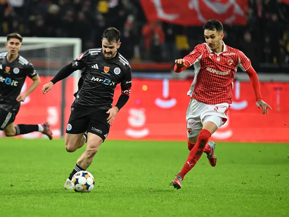 Joao Pedro Santos Lameira si Raul Marian Oprut in meciul de fotbal dintre Dinamo Bucuresti si Otelul Galati, din cadrul Superligii Superbet, desfasurat pe Arena Nationala din Bucuresti, sambata 29 noiembrie 2025. © FOTO:Razvan Pasarica/SPORT PICTURES