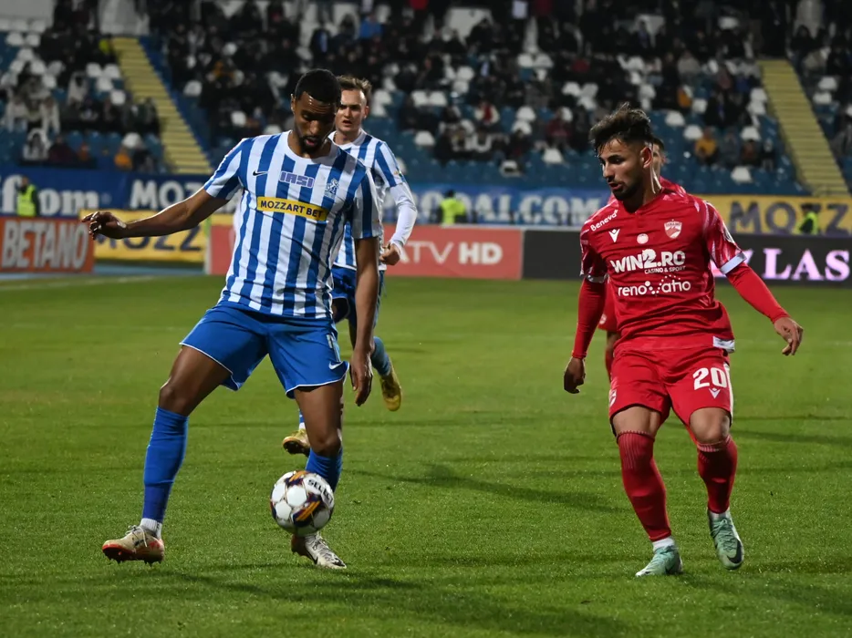 Adel Bettaieb și Antonio Alexandru Bordușanu în meciul de fotbal dintre Poli Iași si Dinamo București contând pentru SuperLiga Superbet, desfășurat pe Stadionul Emil Alexandrescu din Iași, vineri 01 martie 2024. © FOTO: Dragoș PASCANEANU/SPORT PICTURES
