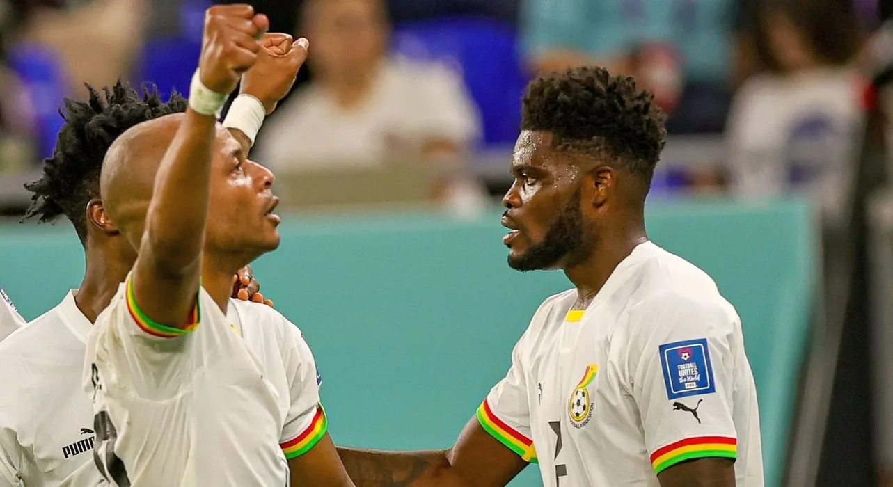 Goal 1-1 Andre Ayew (10) of Ghana scores a goal and celebrates during the 2022 Fifa World Cup match between Portugal and Ghana at Stadium 974, Doha