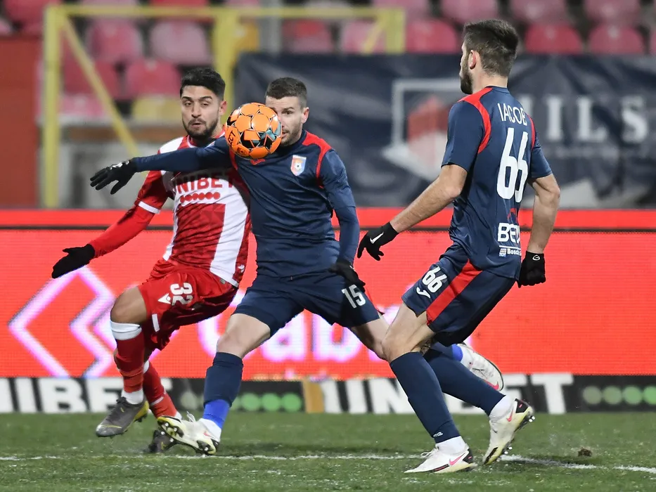Geani Mihai Cretu si Cornel Dinu in meciul de fotbal dintre Dinamo Bucuresti si Chindia Targoviste, contand pentru Liga 1 Casa Pariurilor, desfasurat fara spectatori pe Stadionul Dinamo din Bucuresti, sambata 16 ianuarie 2021. © FOTO:Razvan Pasarica/SPORT PICTURES