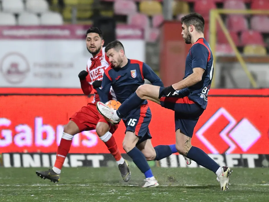 Geani Mihai Cretu, Cornel Dinu si Ante Puljic in meciul de fotbal dintre Dinamo Bucuresti si Chindia Targoviste, contand pentru Liga 1 Casa Pariurilor, desfasurat fara spectatori pe Stadionul Dinamo din Bucuresti, sambata 16 ianuarie 2021. © FOTO:Razvan Pasarica/SPORT PICTURES