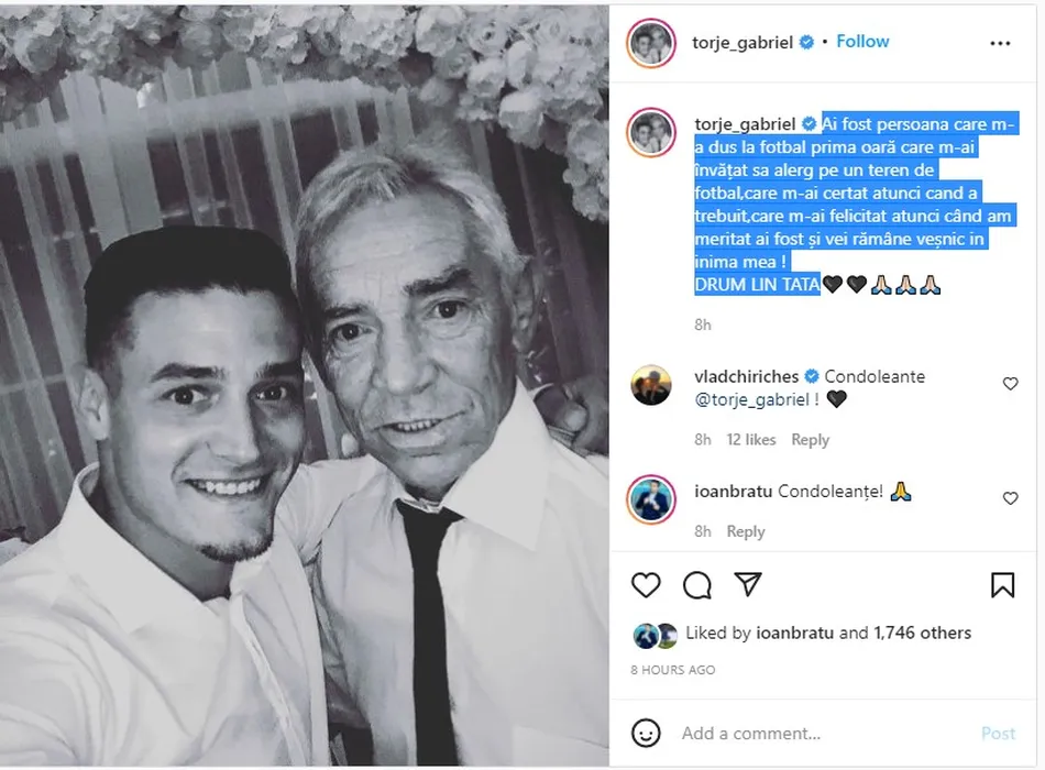 Dinamo, lovită de o nouă tragedie! Gabi Torje este în doliu, după moartea tatălui său: „Drum lin”