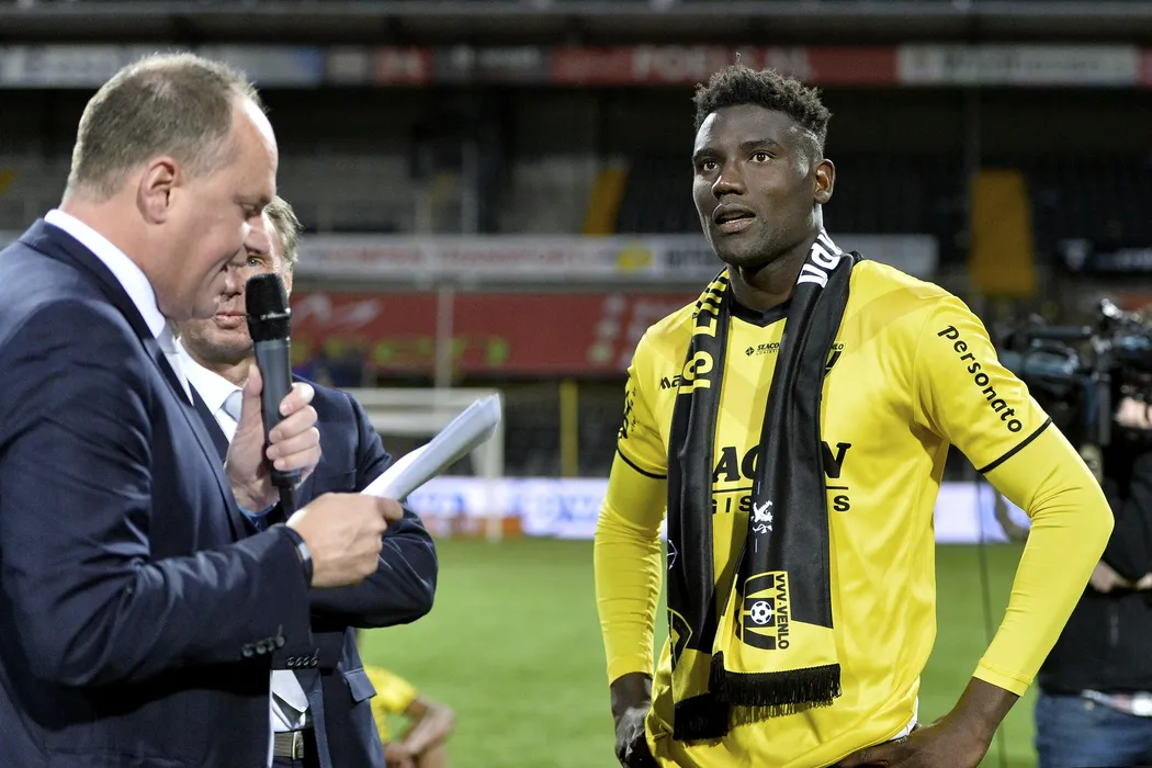 VENLO, 15-05-2019, Eredivisie, Covebo Stadion - De Koel, season 2018 / 2019, VVV-Venlo saying goodbye to VVV-Venlo player Peniel Mlapa after the match VVV - Vitesse 1-3,Image: 433514665, License: Rights-managed, Restrictions: *** World Rights Except Austria and The Netherlands ***, Model Release: no