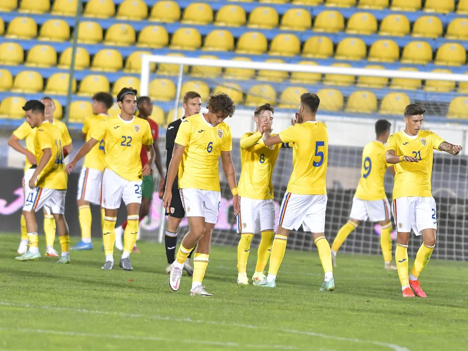 Bucuria a fotbalistilor romani Matei Ilie si Andrei Marginean dupa meciul amical de fotbal dintre Romania U20 si Portugalia U20, desfasurat pe Stadionul Anghel Iordanescu din Voluntari, joi 2 septembrie 2021. © FOTO:Razvan Pasarica/SPORT PICTURES