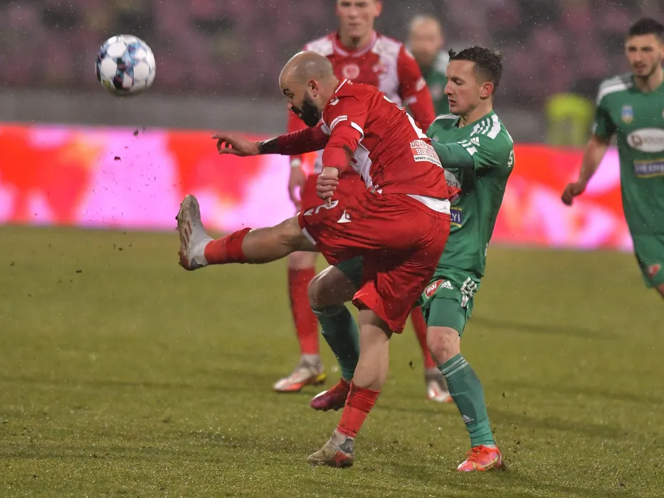 Gabriel Rodrigues De Moura si Marius Stefanescu in meciul de fotbal dintre Dinamo Bucuresti si Sepsi OSK Sfantu Gheorghe, contand pentru Liga 1 Casa Pariurilor, desfasurat pe Stadionul Dinamo din Bucuresti, marti 1 martie 2022. © FOTO:Razvan Pasarica/SPORT PICTURES