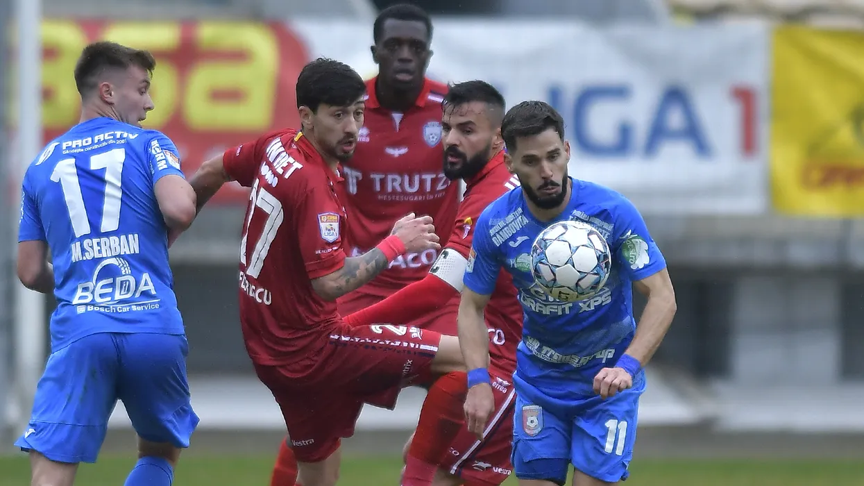 Marian Cristinel Serban, Eduard Marian Florescu, Enriko Papa si Daniel Constantin Florea in meciul de fotbal dintre Chindia Targoviste si FC Botosani, contand pentru Liga 1 Casa Pariurilor, desfasurat pe Stadionul Ilie Oana din Ploiesti, sambata 20 februarie 2022. © FOTO:Razvan Pasarica/SPORT PICTURES