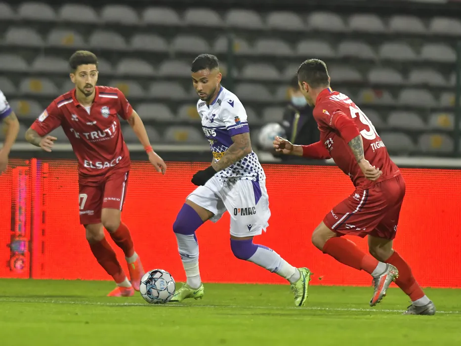 Eduard Marian Florescu, Ruan Ribeiro Teles si Alexandru Tiganasu in meciul de fotbal dintre FC Arges si FC Botosani, contand pentru Liga 1 Casa Pariurilor, desfasurat pe Stadionul Nicolae Dobrin din Pitesti, vineri 5 noiembrie 2021. © FOTO:Razvan Pasarica/SPORT PICTURES