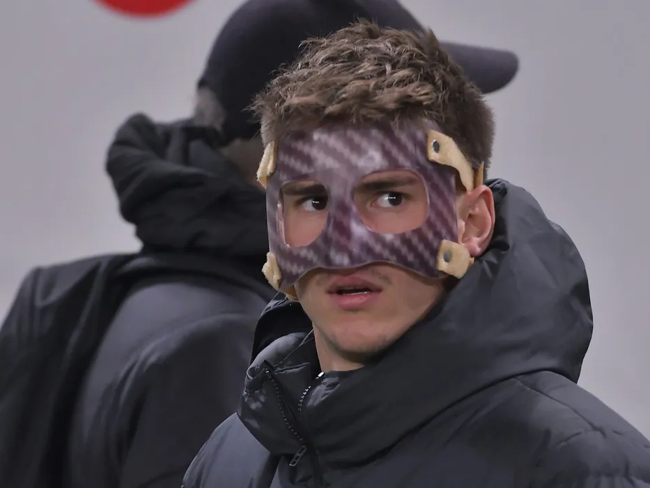 Catalin Mihai Itu cu masca de protectie pe fata in meciul de fotbal dintre Universitatea Craiova si CFR Cluj, contand pentru Liga 1 Casa Pariurilor, desfasurat pe Stadionul Ion Oblemenco din Craiova, sambata 5 februarie 2022. © FOTO:Razvan Pasarica/SPORT PICTURES