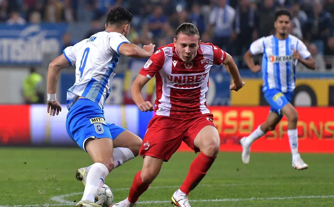 Deniz Giafer il faulteaza in careu pe Andrei Virgil Ivan in meciul de fotbal dintre Universitatea Craiova si Dinamo Bucuresti, contand pentru Liga 1 Casa Pariurilor, desfasurat pe Stadionul Ion Oblemenco din Craiova, luni 27 septembrie 2021. © FOTO:Razvan Pasarica/SPORT PICTURES