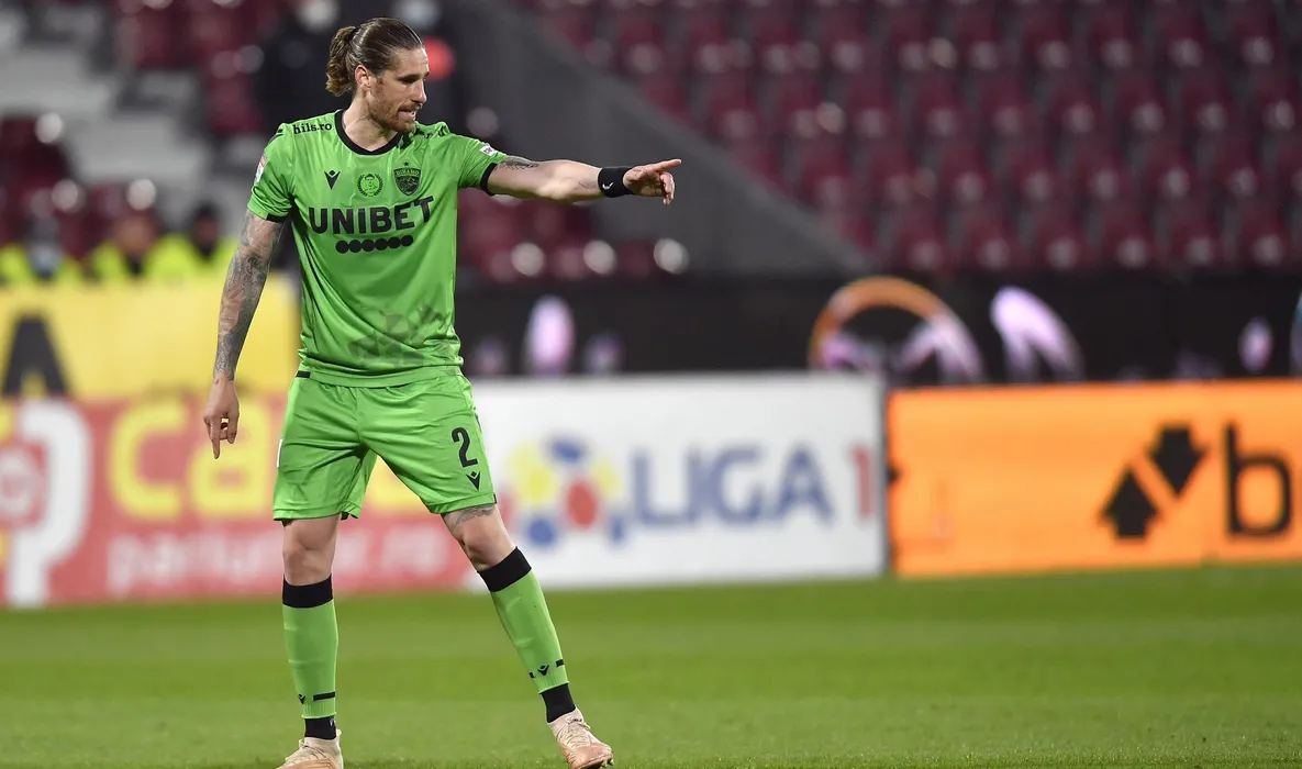 Raul Albentosa, de la Dinamo, reactioneaza in timpul meciului de fotbal contra echipei CFR Cluj d din etapa 29 a Ligii 1, disputat pe stadionul Dr. Constantin Radulescu din Cluj-Napoca, luni, 5 aprilie 2021. ALEX NICODIM / MEDIAFAX FOTO