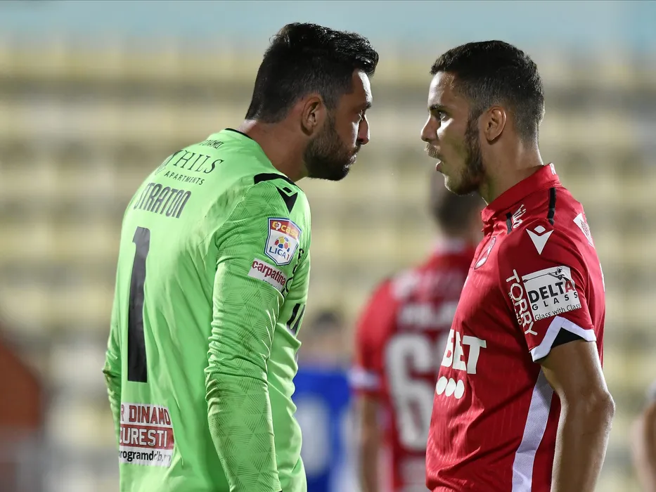 Contra verbala intre Catalin Straton si Kristian Kostrna in meciul de fotbal dintre FC Voluntari si Dinamo Bucuresti, contand pentru play-out-ul Ligii 1 Casa Pariurilor, disputat fara spectatori pe Stadionul Anghel Iordanescu din Voluntari, duminica 2 august 2020.© FOTO:Razvan Pasarica/SPORT PICTURES