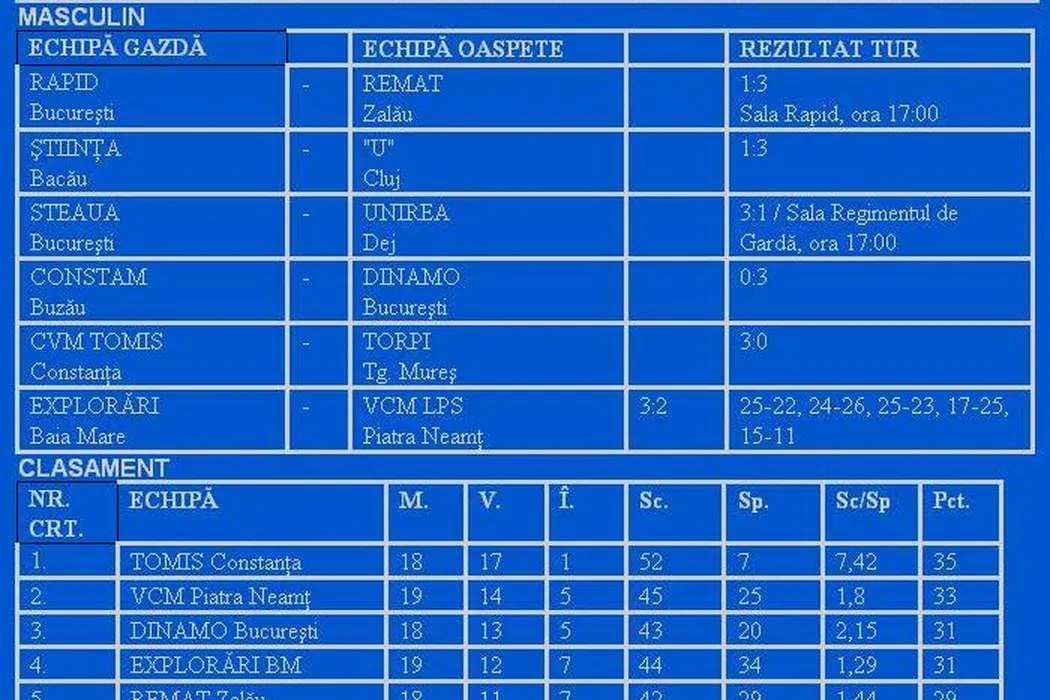 Dinamo – Tomis, dispută între două echipe de podium