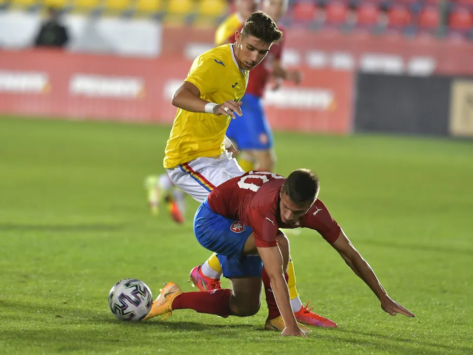 Andrei Marginean si Daniel Smekal in meciul amical de fotbal dintre Romania U20 si Cehia U20, desfasurat pe Stadionul Anghel Iordanescu din Voluntari, joi 7 octombrie 2021. © FOTO:Razvan Pasarica/SPORT PICTURES