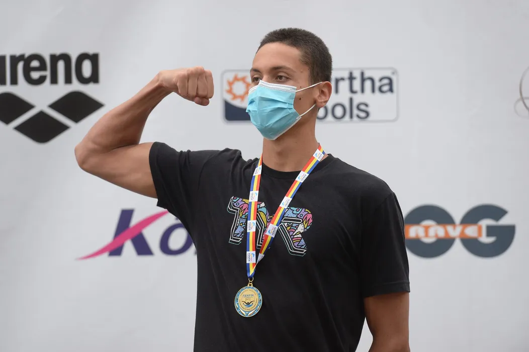 David Popovici, de la CSA Steaua, a castigat titlul de campion national in proba de 50 m liber in cadrul Campionatului National, Tineret, Juniori desfasurat la Bazinul Lia Manoliu din Bucuresti, vineri, 18 iunie 2021. EDUARD VINATORU / MEDIAFAX FOTO