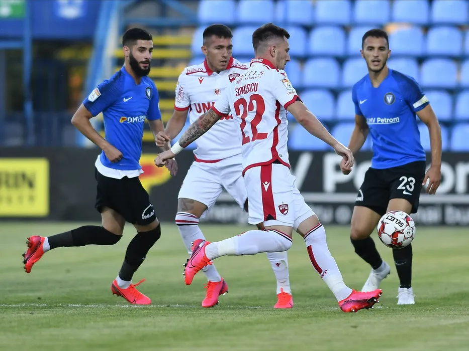 Radu Stefanita Boboc, Robert Marian Moldoveanu, Deian Cristian Sorescu si Virgil Eugen Ghita in meciul de fotbal dintre FC Viitorul si Dinamo Bucuresti, contand pentru play-out-ul Ligii 1 Casa Pariurilor, disputat fara spectatori pe Arena centrala a Academiei Gheorghe Hagi din Ovidiu, joi 2 iulie 2020. © FOTO:Razvan Pasarica/SPORT PICTURES