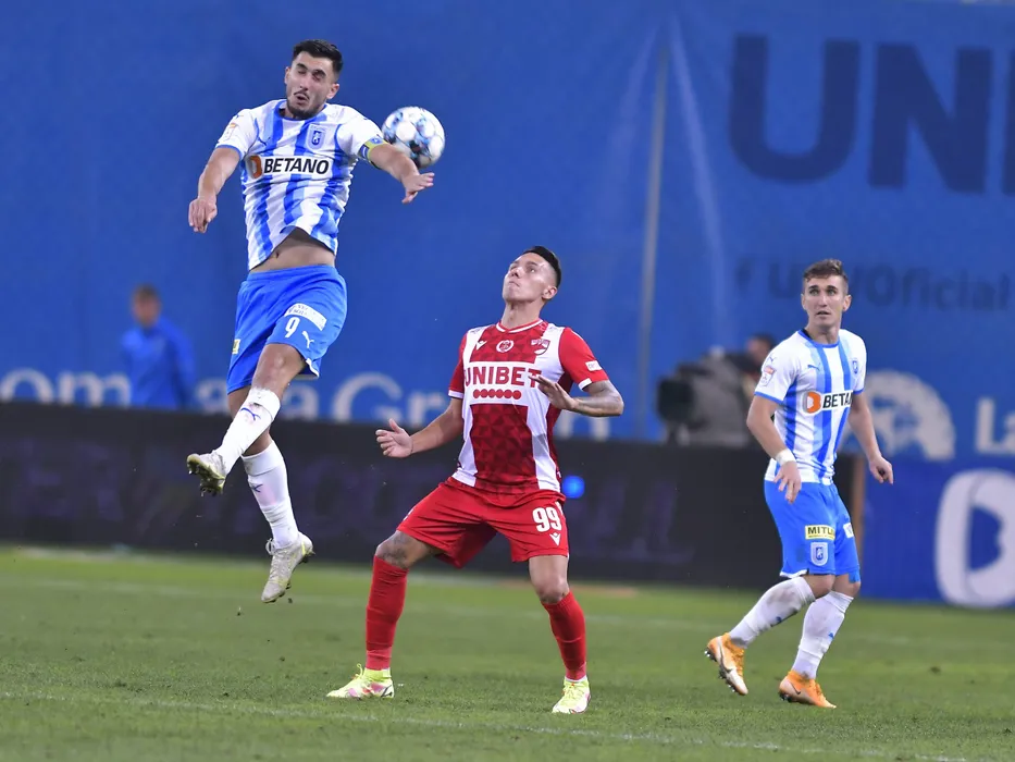 Andrei Virgil Ivan si Robert Marian Moldoveanu in meciul de fotbal dintre Universitatea Craiova si Dinamo Bucuresti, contand pentru Liga 1 Casa Pariurilor, desfasurat pe Stadionul Ion Oblemenco din Craiova, luni 27 septembrie 2021. © FOTO:Razvan Pasarica/SPORT PICTURES