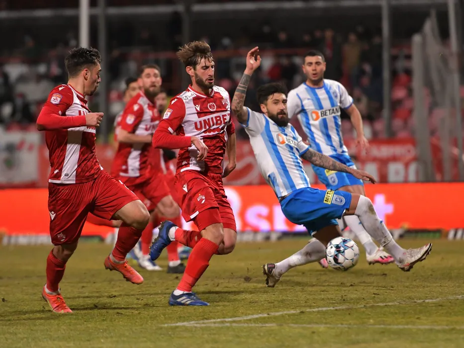 Andrei Radu, Bruno Patrick Aloe Baptiste si Paul Papp in meciul de fotbal dintre Dinamo Bucuresti si Universitatea Craiova, contand pentru Liga 1 Casa Pariurilor, desfasurat pe Stadionul Dinamo din Bucuresti, joi 10 februarie 2022. © FOTO:Razvan Pasarica/SPORT PICTURES