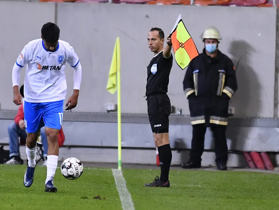 Arbitrul asistent Valentin Avram in meciul de fotbal dintre Dinamo Bucuresti si Universitatea Craiova, contand pentru Liga 1 Casa Pariurilor, desfasurat fara spectatori pe Arena Nationala din Bucuresti, duminica 18 octombrie 2020. © FOTO:Razvan Pasarica/SPORT PICTURES