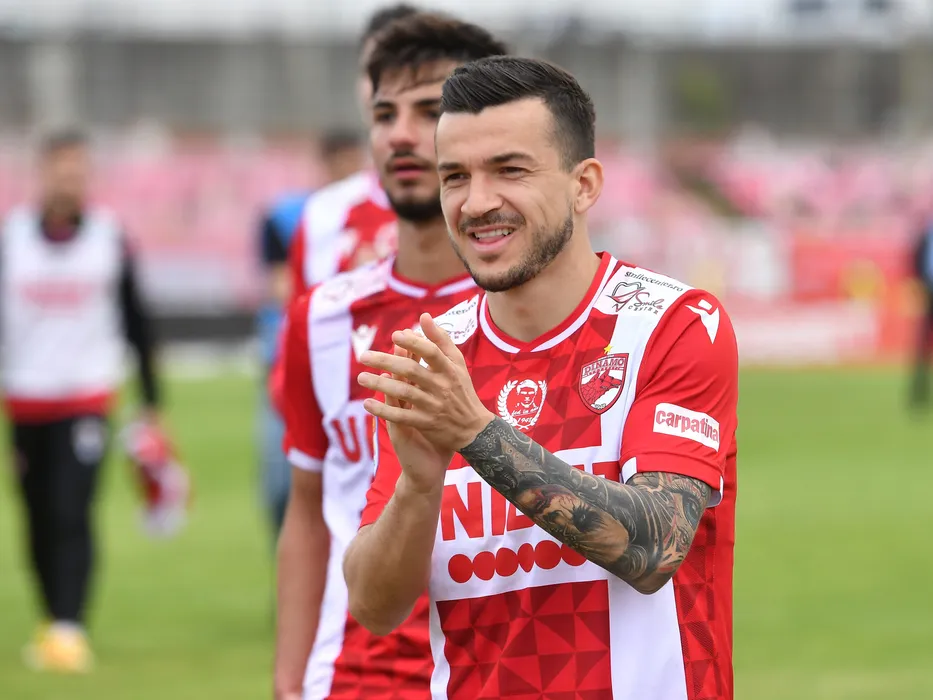 Cosmin Gabriel Matei saluta galeria dupa meciul de fotbal dintre Dinamo Bucuresti si Academica Clinceni, contand pentru Play-out-ul Ligii 1 Casa Pariurilor, desfasurat pe Stadionul Dinamo din Bucuresti, sambata 30 aprilie 2022. © FOTO:Razvan Pasarica/SPORT PICTURES