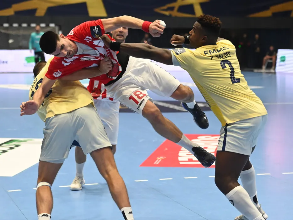 Eduardo Gurbindo Martinez si Pedro Veitia Valdes in meciul de handbal masculin dintre Dinamo Bucuresti si FC Porto, din cadrul grupelor Ligii Campionilor, desfasurat in Sala Polivalenta-Ioan Kunst Ghermanescu din Bucuresti, miercuri 5 octombrie 2022. © FOTO:Razvan Pasarica/SPORT PICTURES
