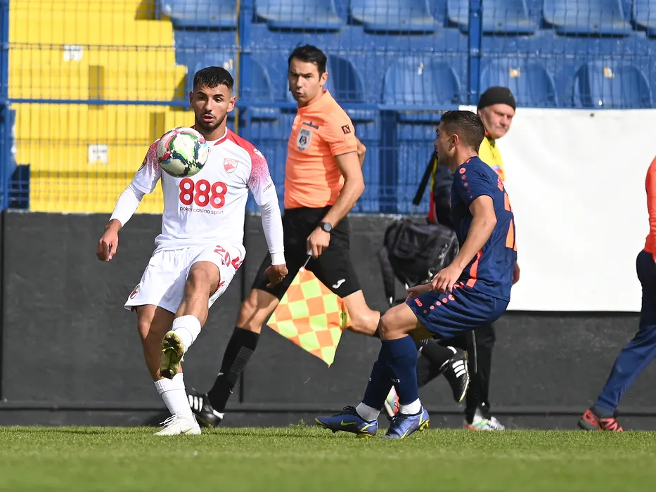 Antonio Bordusanu si Robert Neacsu alaturi de arbitrul asistent Cosmin Vatamanu in meciul de fotbal dintre Metaloglobus Bucuresti si Dinamo Bucuresti, contand pentru Liga a-2-a Casa Pariurilor, desfasurat pe Clinceni Arena din Clinceni, sambata 22 octombrie 2022. © FOTO:Razvan Pasarica/SPORT PICTURES