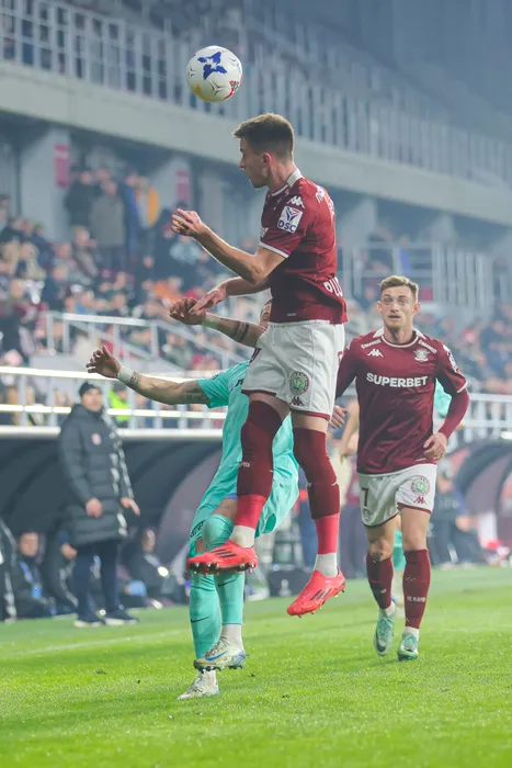 Mattias Kait și Claudiu Valentin Micovschi în meciul de fotbal dintre FC Rapid 1923 București și FC CFR 1907 Cluj, din cadrul Cupei României Betano, desfășurat pe Superbet Arena - Giulești din București, joi 19 decembrie 2024. © FOTO: Mihai-Antonio VASILE/SPORT PICTURES