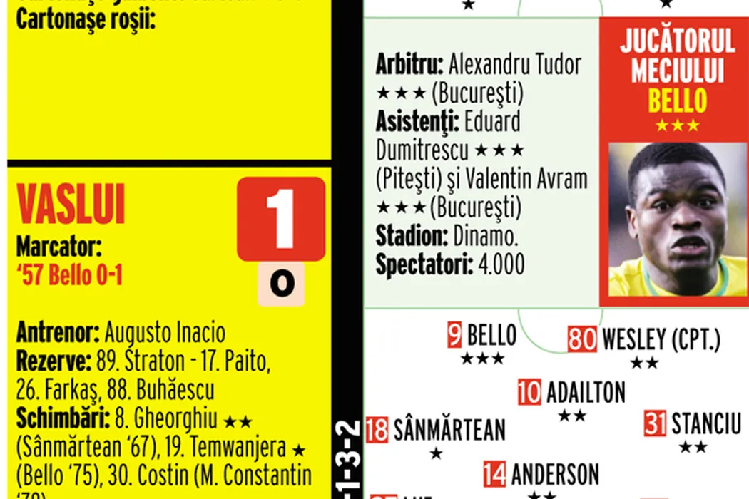 Dinamo zero, Vaslui Bello: Dinamo – Vaslui 0-1!** Yero Bello a marcat golul victoriei, lui Ciobi i s-a cerut demisia