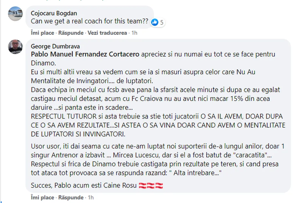 Dinamoviștii îi cer lui Pablo Cortacero să-l demită de urgență pe Cosmin Contra. „Caută rapid un antrenor în Spania!” | FOTO