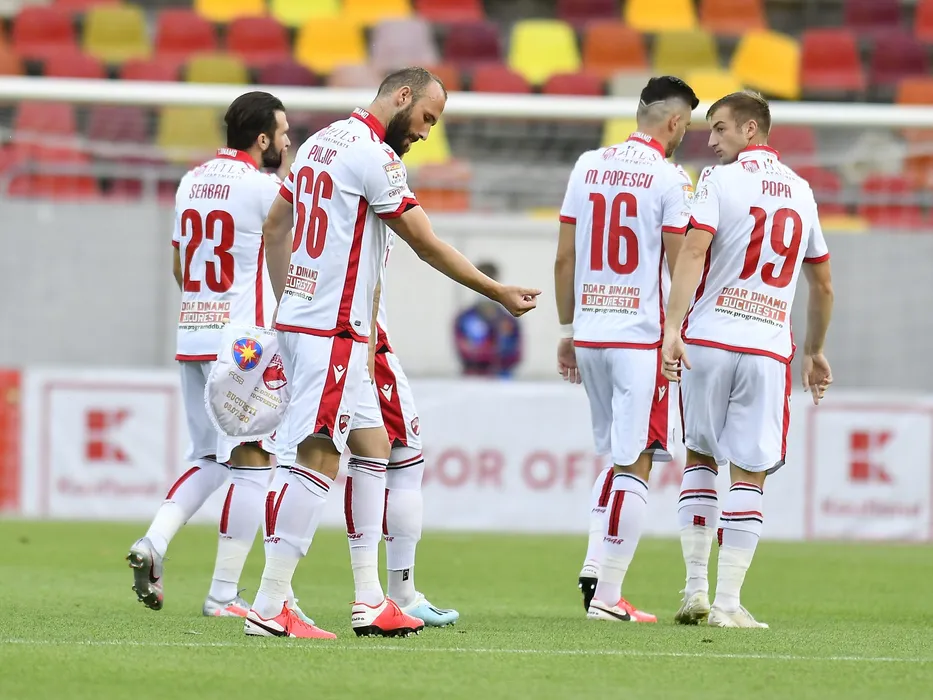 Capitanul dinamovist Ante Puljic alaturi de Daniel Iliuta Popa la intrarea pe teren a dinamovistilor in meciul de fotbal dintre FCSB si Dinamo Bucuresti, contand pentru returul semifinalei Cupei Romaniei, disputat fara spectatori pe Arena Nationala din Bucuresti, miercuri 8 iulie 2020. © FOTO:Razvan Pasarica/SPORT PICTURES