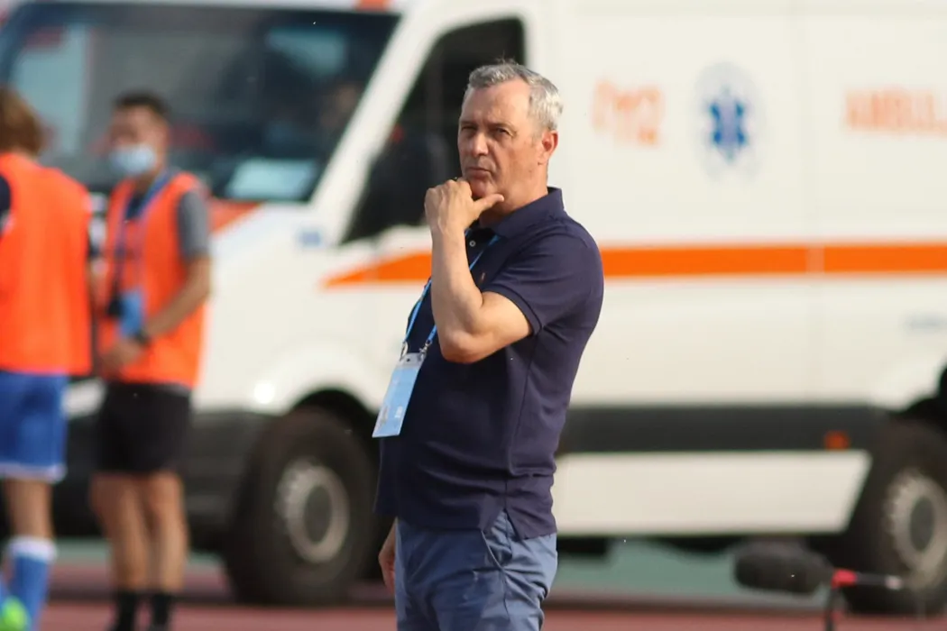 Mircea Rednic, antrenorul echipei CSM Politehnica Iasi, urmareste meciul de fotbal contra echipei Dinamo din etapa a IX-a a play-out-ului Ligii 1, disputat pe stadionul Dinamo din Bucuresti, duminica, 12 iulie 2020.GEORGE FILIP / MEDIAFAX FOTO