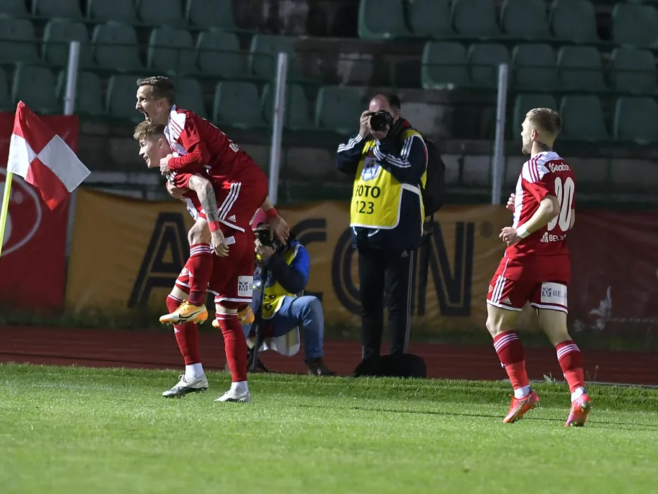 Mihai Claudiu Adrian Petrila se bucura dupa un gol marcat alaturi de Marius Stefanescu si Catalin Gheorghita Golofca in meciul de fotbal dintre Sepsi OSK Sfantu Gheorghe si FCSB, contand pentru Play-off-ul Ligii 1 Casa Pariurilor, desfasurat fara spectatori pe Stadionul Municipal din Sfantu Gheorghe, duminica 16 mai 2021. © FOTO:Razvan Pasarica/SPORT PICTURES