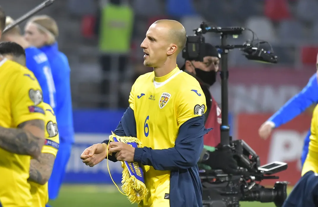 Vlad Chiricheş la startul meciului de fotbal dintre Romania si Islanda, din cadrul Preliminariilor Campionatului Mondial 2022, desfasurat pe Stadionul Steaua din Bucuresti, joi 11 noiembrie 2021. © FOTO:Razvan Pasarica/SPORT PICTURES